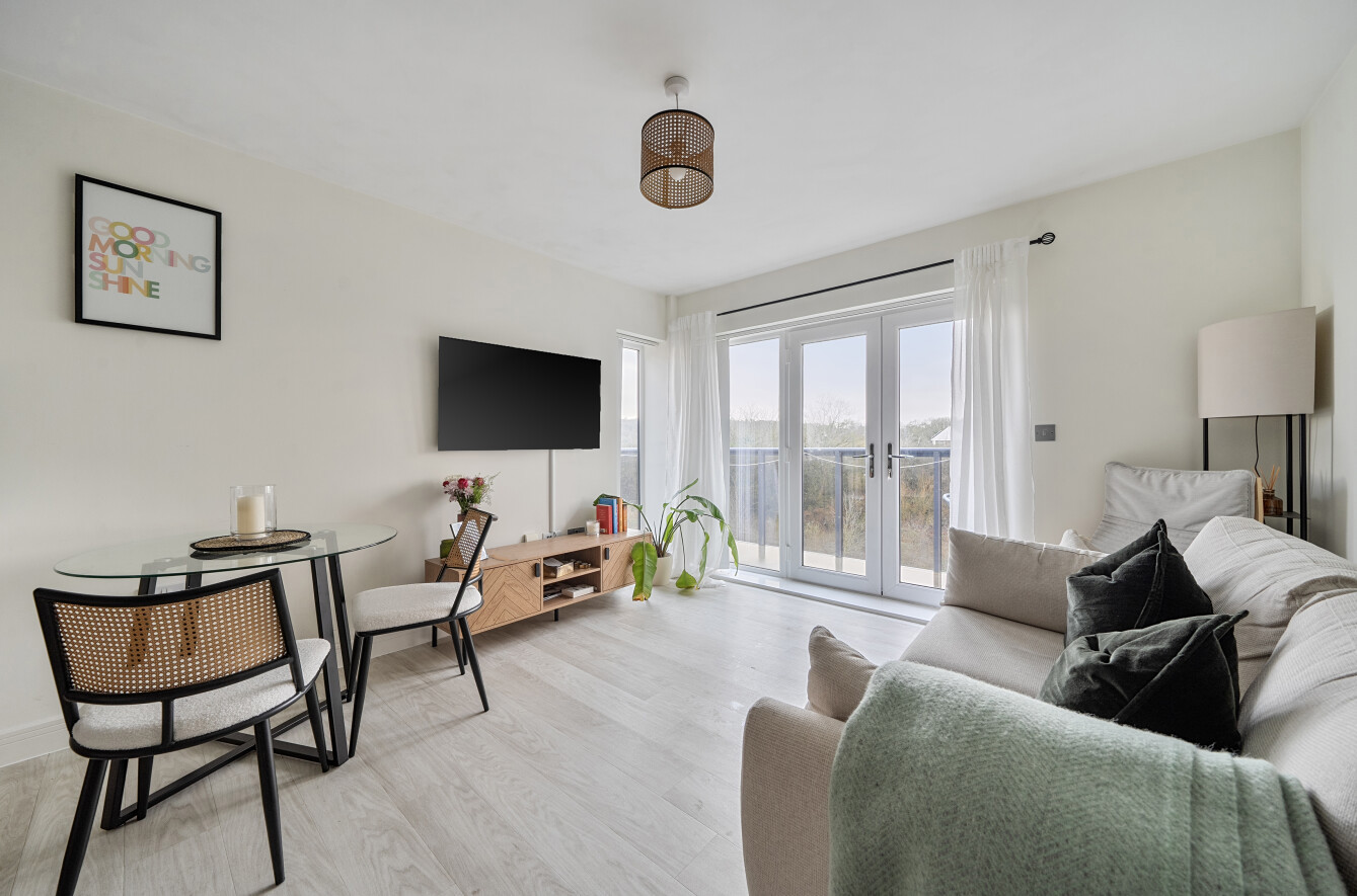 This one-bedroom flat is offered **for sale** in the sought-after area of The Mill, Canton, Cardiff, and is well suited to first-time buyers. The property features an open-plan layout incorporating the kitchen and reception space, creating a practical living and dining area. Large windows draw in natural light and provide access to a wrap-around balcony, which offers open river views and extends the usable living space outdoors.