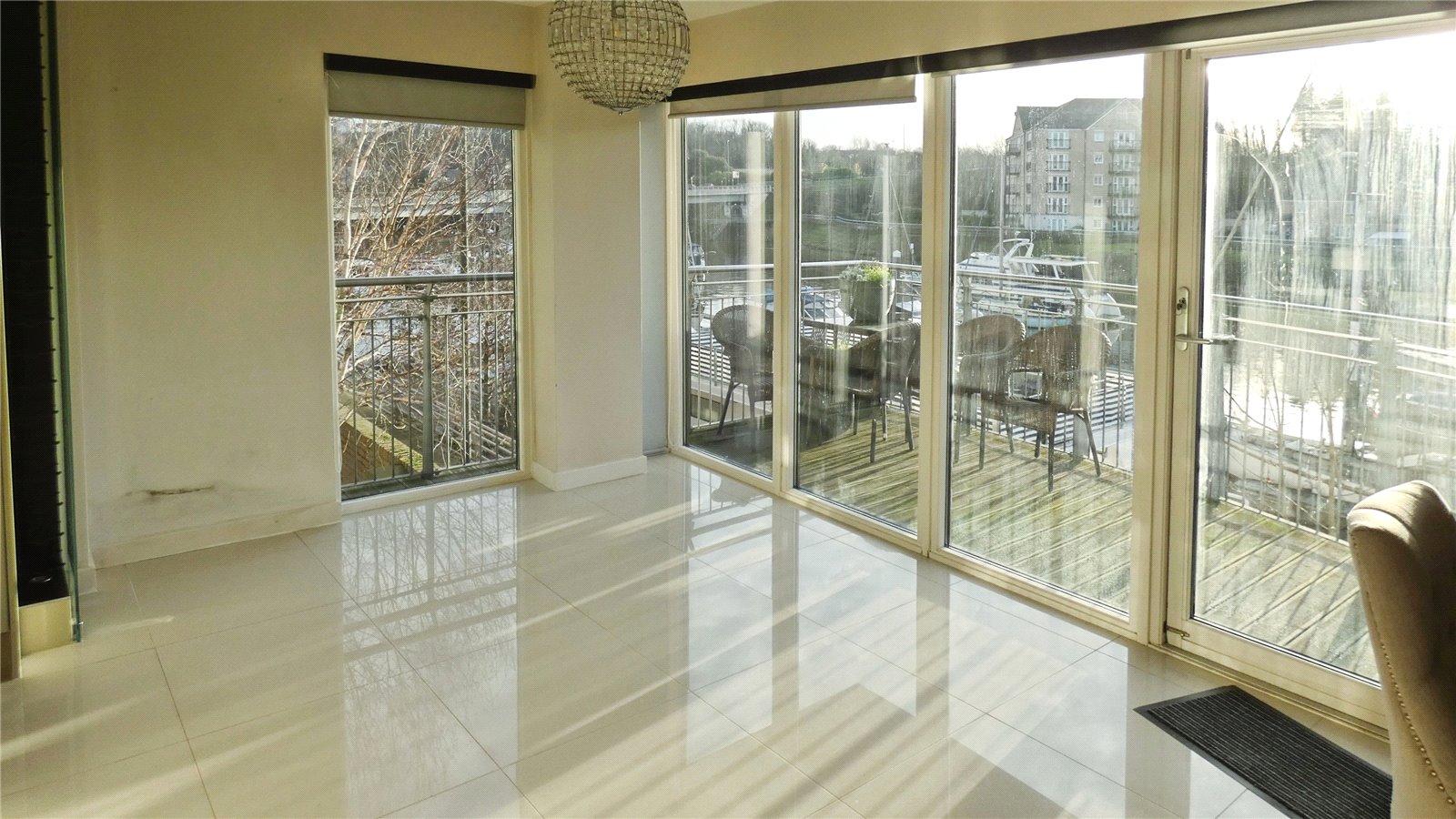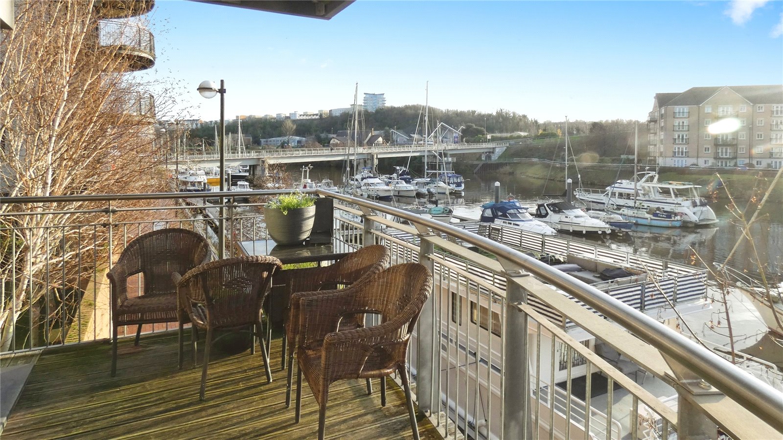 This two-bedroom flat is for sale in the Victoria Wharf development in Cardiff, offering a waterside setting with a range of local amenities and transport links nearby.