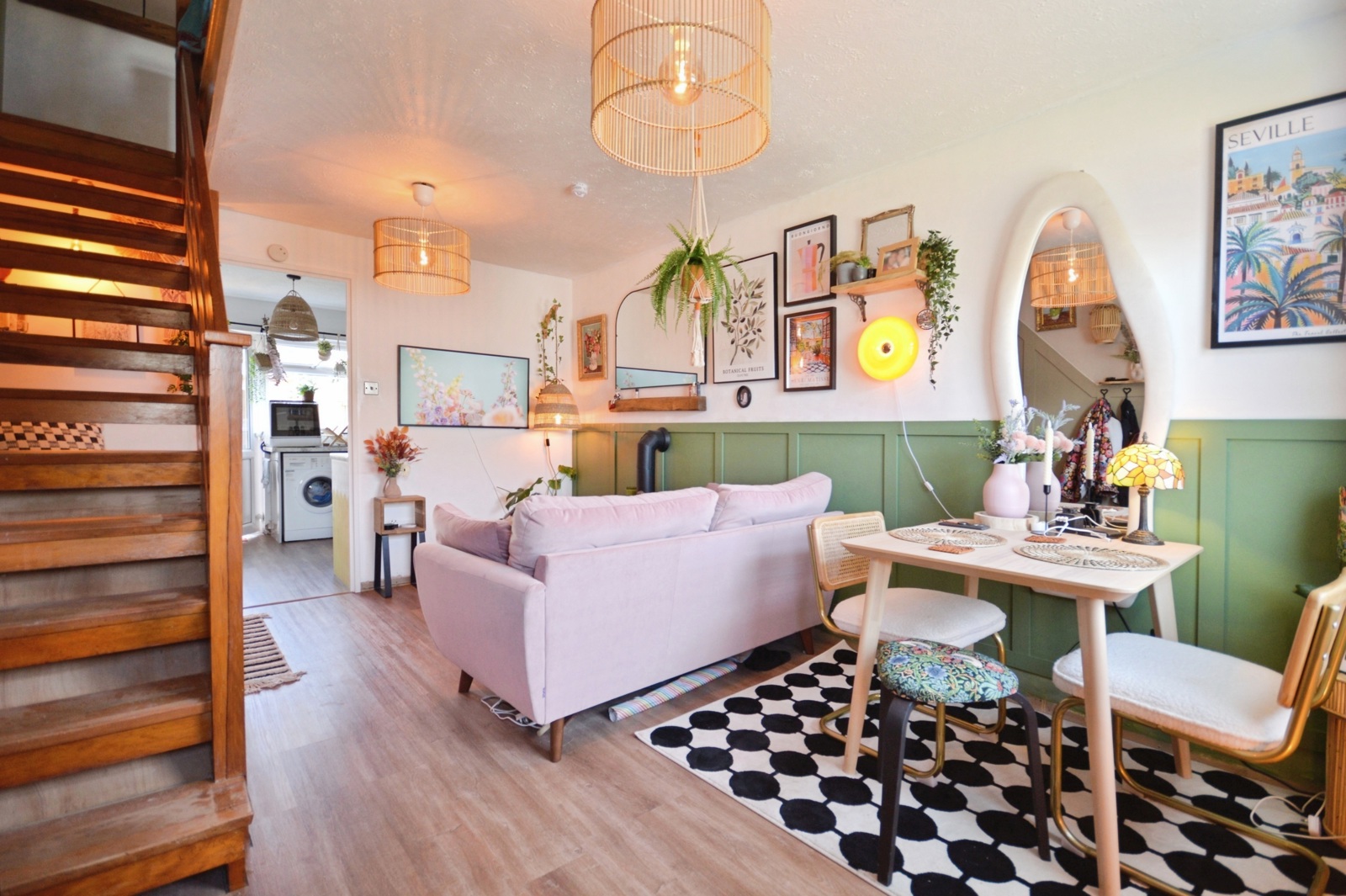 The ground floor features an open-plan reception room, providing a versatile living and dining area, complemented by a kitchen benefiting from natural light. Upstairs, there are two double bedrooms, offering practical sleeping accommodation, together with a showeroom.